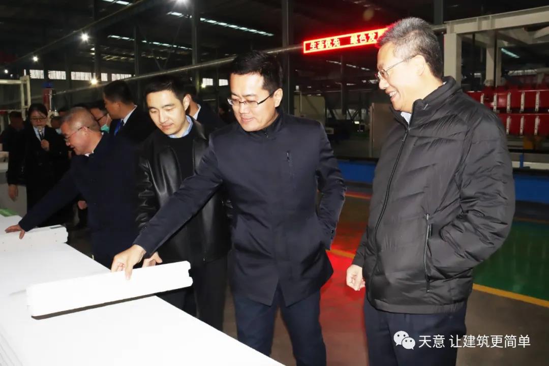 12月19日下午,嘉祥縣委副書記江峰一行蒞臨天意機械考察全市新舊動能轉(zhuǎn)換現(xiàn)場觀摩項目——裝配式建筑自動化PC生產(chǎn)線項目。兗州區(qū)區(qū)委副書記寇寧,發(fā)展和改革局副局長劉守全,天意機械總經(jīng)理劉海龍等領導陪同考察。
